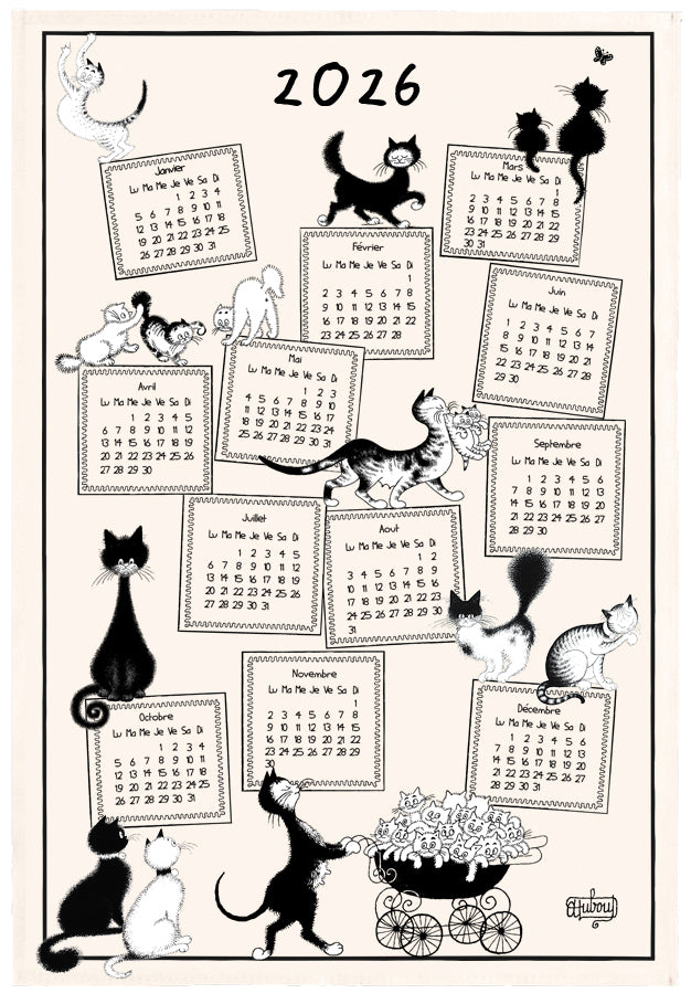 Start the year with a purr and a chuckle—this 2026 calendar tea towel features Albert Dubout’s famously mischievous cats, tangled in their usual chaos.